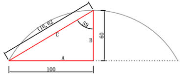 ②弦高弦長構成三角形 邊長即為 a=100 b=60