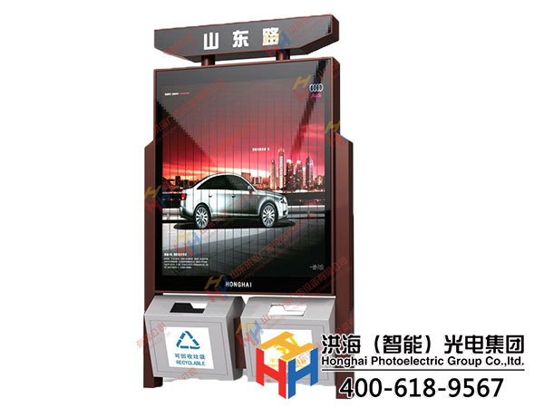 洪海新款的多功能廣告垃圾箱,既實用又美觀,這些公共設施的完善,讓城市的環境衛生更整潔的同時,又提高了大家的環保意識和文明意識。分類垃圾箱讓市民自覺的將垃圾進行分類投放,這不但減輕了清潔人員的工作量,還讓市民認識到將垃圾進行分類的重要性。提升城市形象的同時,還能為城市增添一道動態的風景,還能助力城市亮化。多功能廣告垃圾箱讓城市多一道靚麗風景