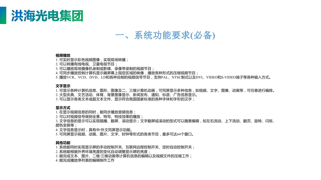 洪海光電集團有限公司 是一家專業致力于智能景觀動態LED顯示屏的研發,以智能機器人高端宣傳設備為研究方向,我們將機器人的機械運動美學和LED智能顯示相結合,創造出系列智能廣告和展示設備,實現顯示屏的旋轉升降、伸縮、變形、無線傳輸、遠程控制、人機互動等現代智能化元素,為智慧城市提供全套的城市景觀、戶外廣告、機械幕墻配套的技術服務方案。 總工程師史洪海先生獲200多項國家專利,是受聘于中國青年創業國際計劃的青年創業導師和大學產業教授,在中國智能光電行業中具有非凡的創造力和舉足輕重的地位。