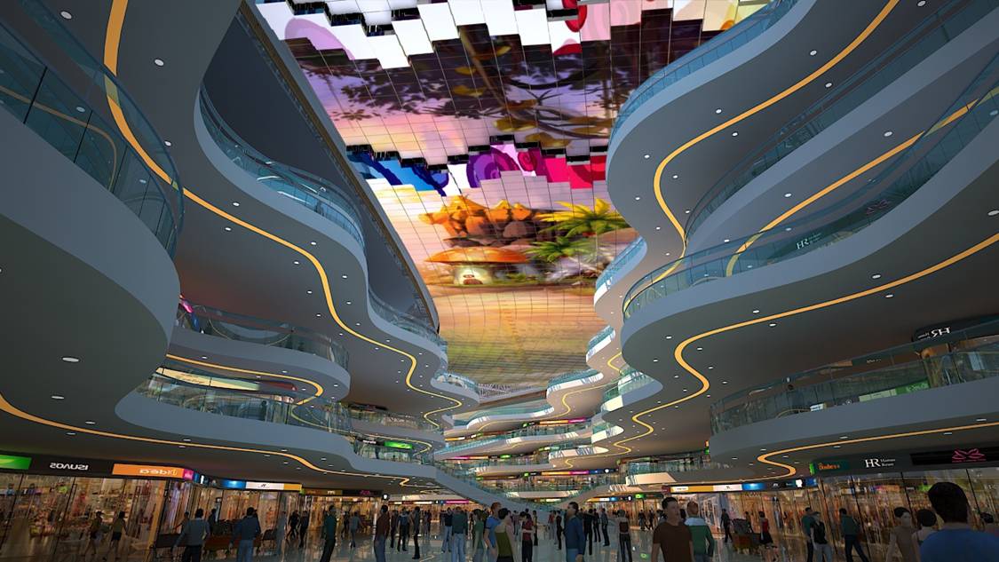全球掀起天幕熱潮,低碳環(huán)保,美化亮化城市,成為城市宣傳的熱點(diǎn)。天幕,曾經(jīng)出現(xiàn)在科幻電影里,如同一塊夢(mèng)幻的天空,籠罩在未來(lái)都市的上方。什么是天幕,簡(jiǎn)單來(lái)說(shuō),天幕就是橫亙?cè)诳罩械囊粔K巨大的LED全彩顯示屏,利用聲、光、電等技術(shù)手段,營(yíng)造璀璨星空、夢(mèng)幻海洋、美麗花海等畫(huà)面,配合各種照明亮化燈帶和三維聲像擴(kuò)聲系統(tǒng),給人震撼的視聽(tīng)享受。