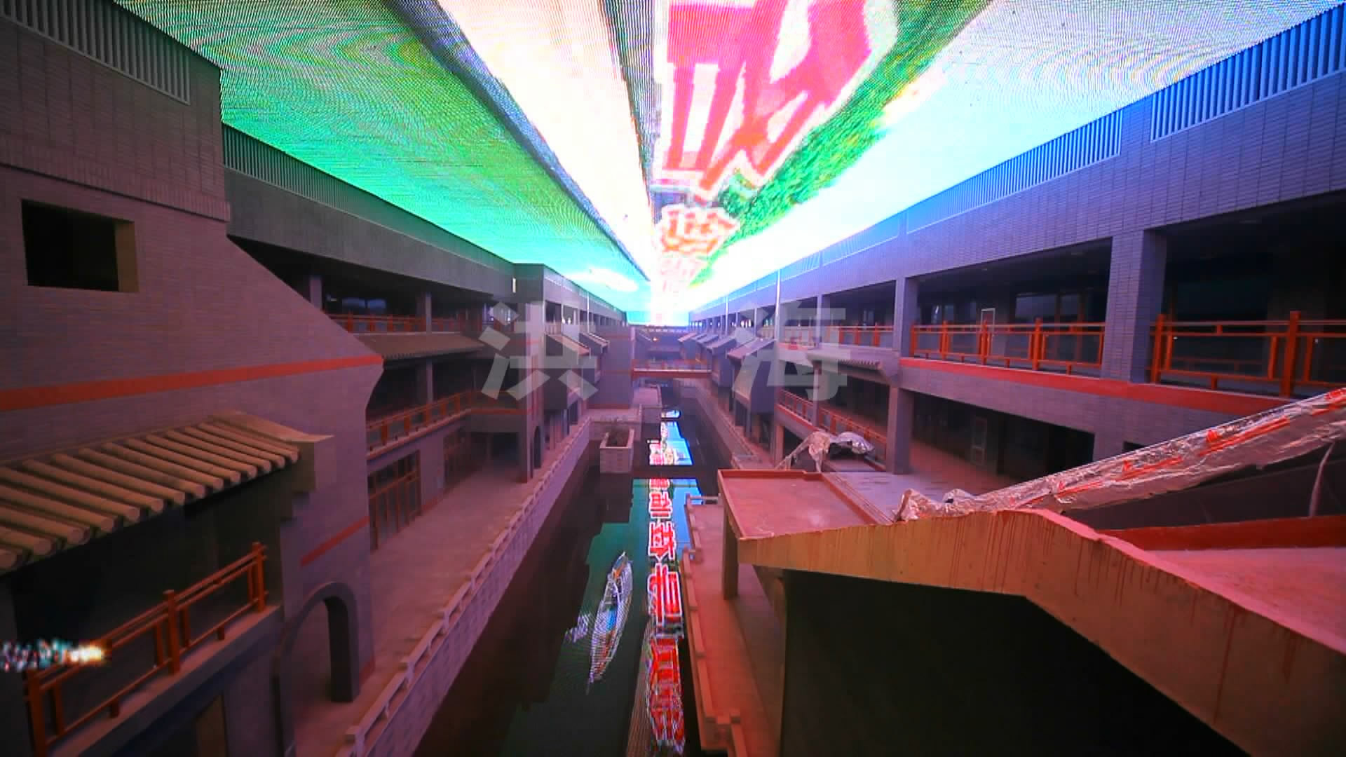 洪海LED天幕(彩色矩陣天幕)以其弧形式的設(shè)計(jì)占據(jù)整片外墻,蜿蜒起伏,白天具有很好的格柵裝飾效果,到了傍晚LED點(diǎn)亮,以其磅礴的視頻展現(xiàn)多彩的世界,在渲染商業(yè)地產(chǎn)氛圍的同時(shí),聚集人氣提高商業(yè)地產(chǎn)的價(jià)值。