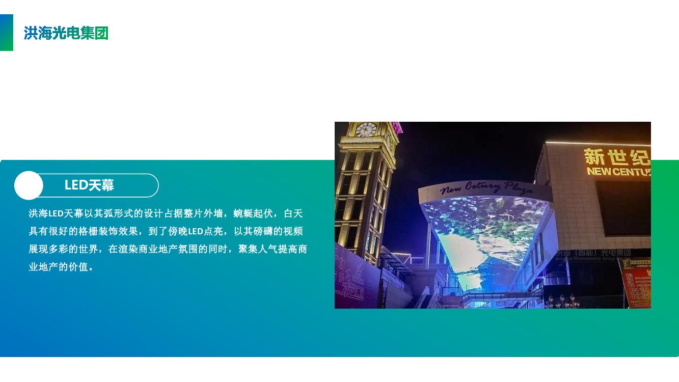 通俗的理解,“led天幕”就是在空中架設(shè)起一塊巨大的LED屏幕,行走在其下的人們抬頭時(shí)可以看到通過高科技手段在這塊天幕上播出的精彩節(jié)目。LED天幕一般常用于商業(yè)地產(chǎn)主要道路上方的頂棚裝飾,橫跨兩側(cè)樓房,蜿蜒起伏,白天具有很好的格柵裝飾效果,到了傍晚LED點(diǎn)亮,以其磅礴的視頻展現(xiàn)多彩世界,在渲染商業(yè)地產(chǎn)氛圍的同時(shí),聚集人氣提高商業(yè)地產(chǎn)的價(jià)值。